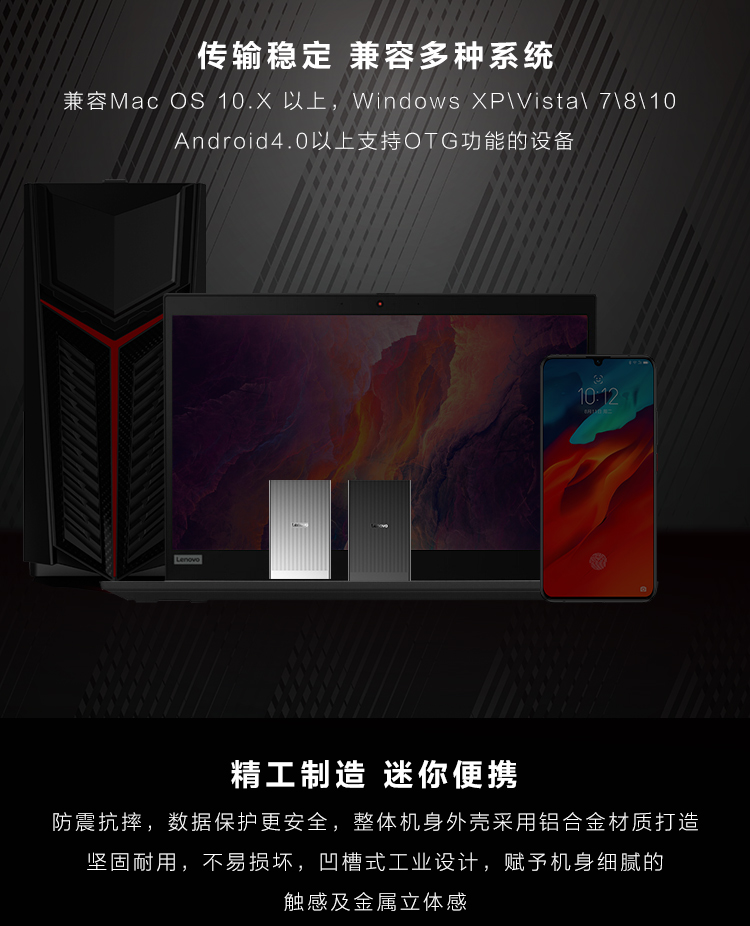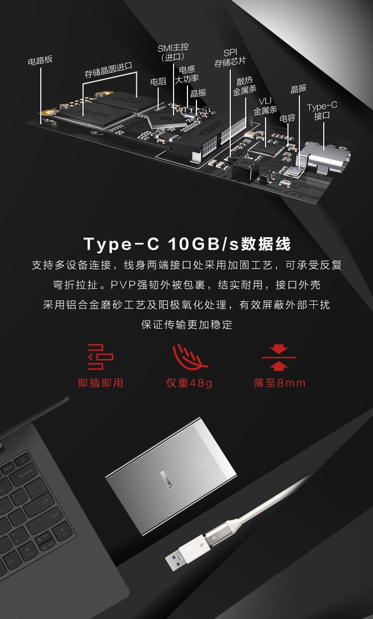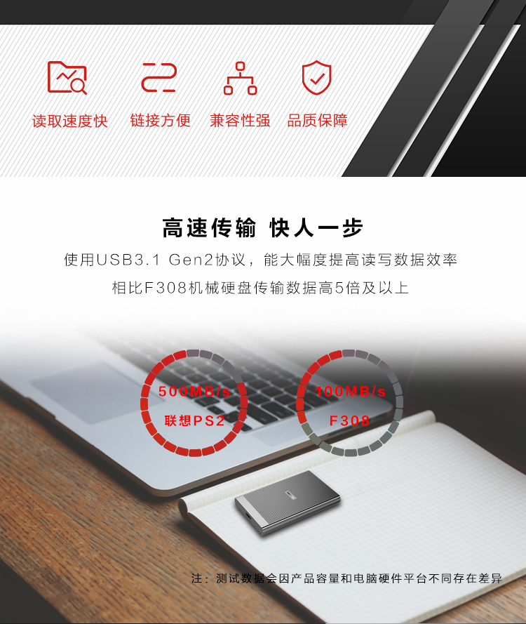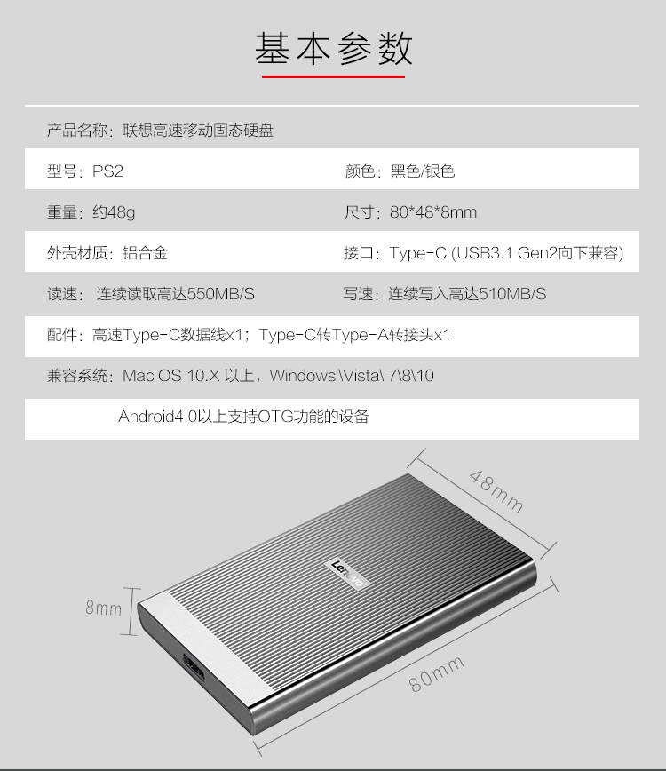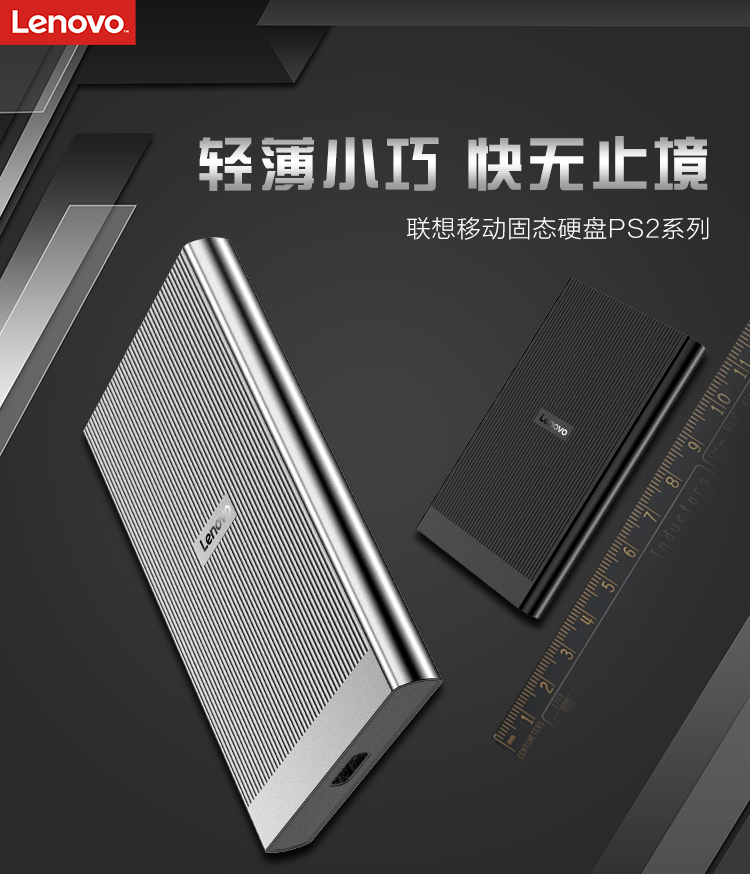 联想(Lenovo) PS2 500GB固态 Type-C USB3.1 移动硬盘(PSSD) 读速高达550MB/s 皓月银