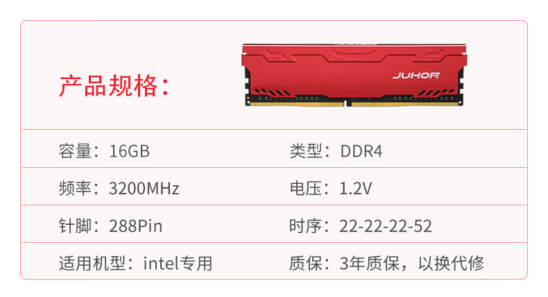 玖合(JUHOR) 16GB DDR4 3200 台式机内存条