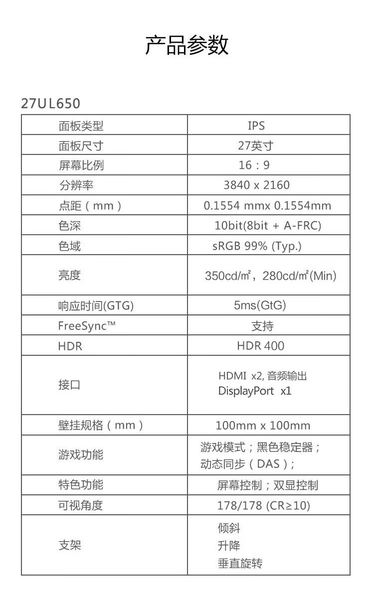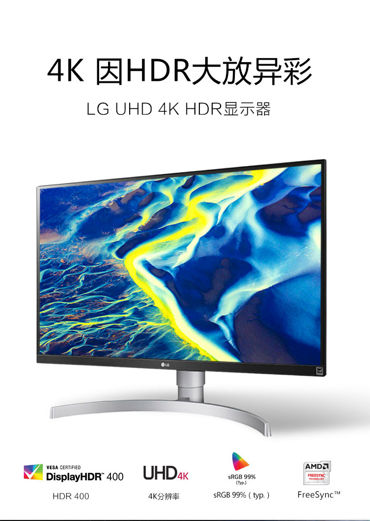 LG 27英寸 UHD 4K超高清 HDR400 sRGB99%