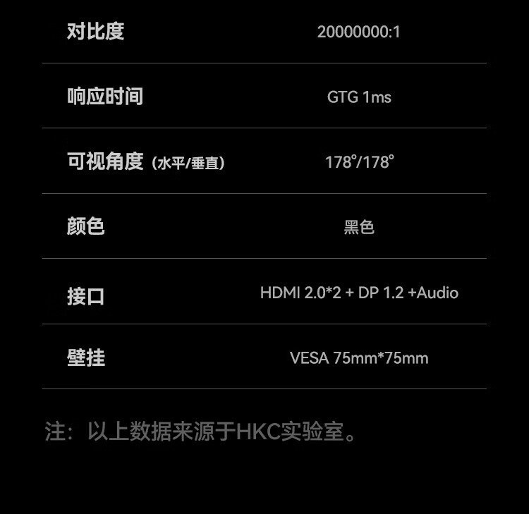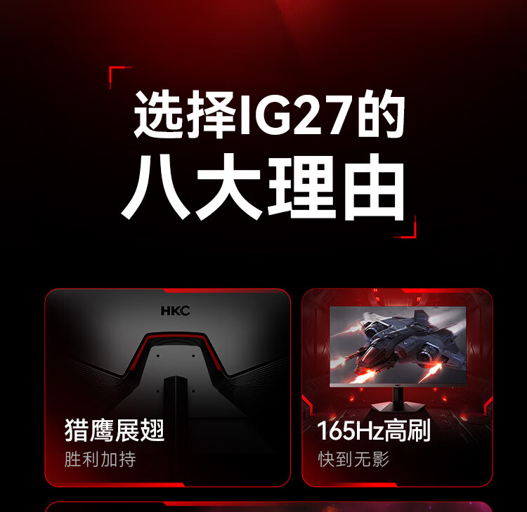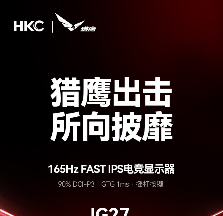 HKC 27英寸 FastIPS小金刚165Hz高刷 GTG 1ms 高清广色域