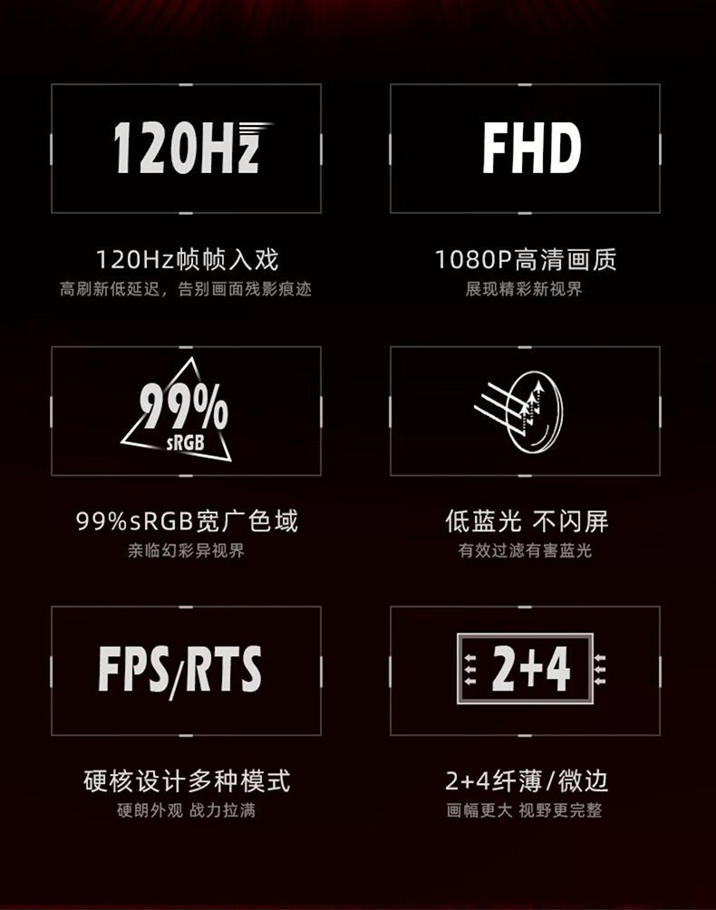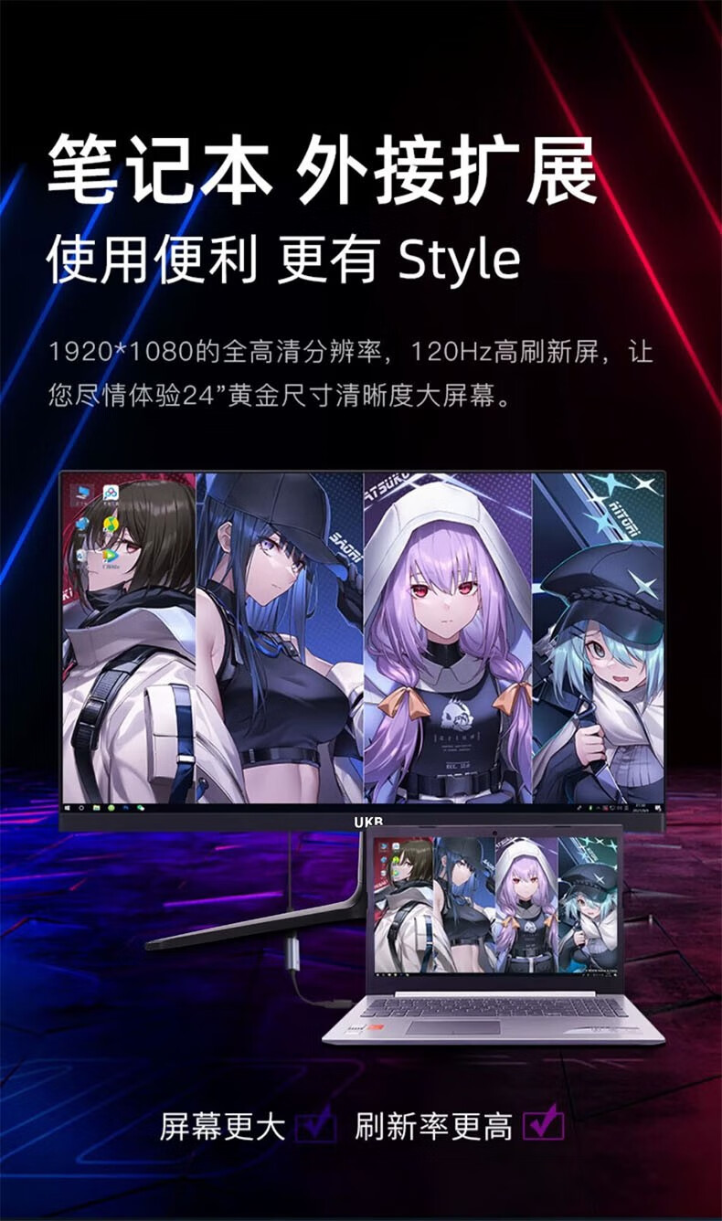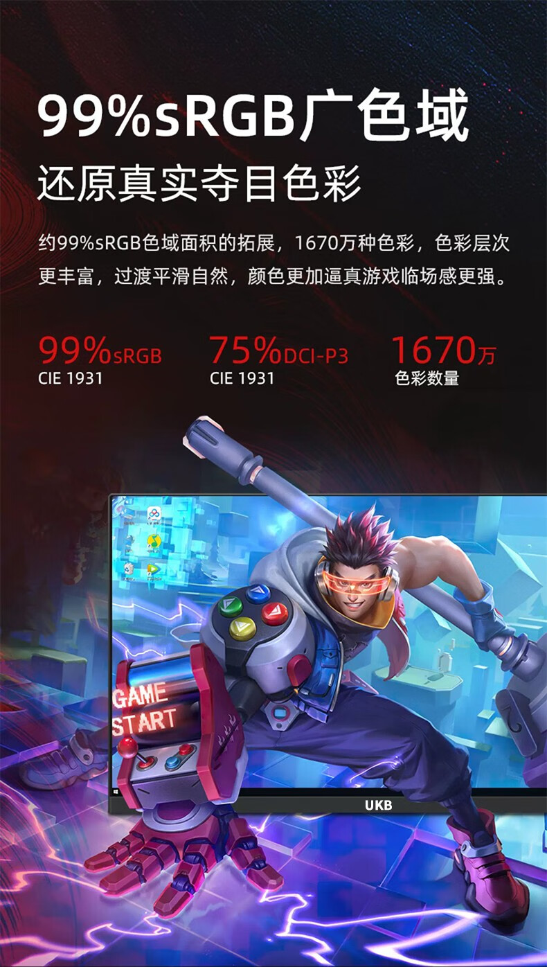 UKB显示器电脑显示屏24英寸超薄微边框高清2k电竞游戏屏幕