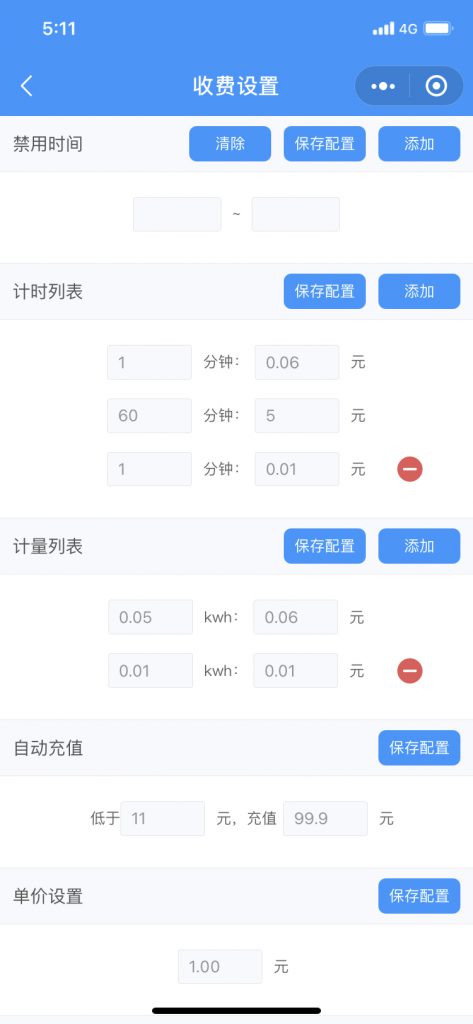 计时列表:以时间计费设置。